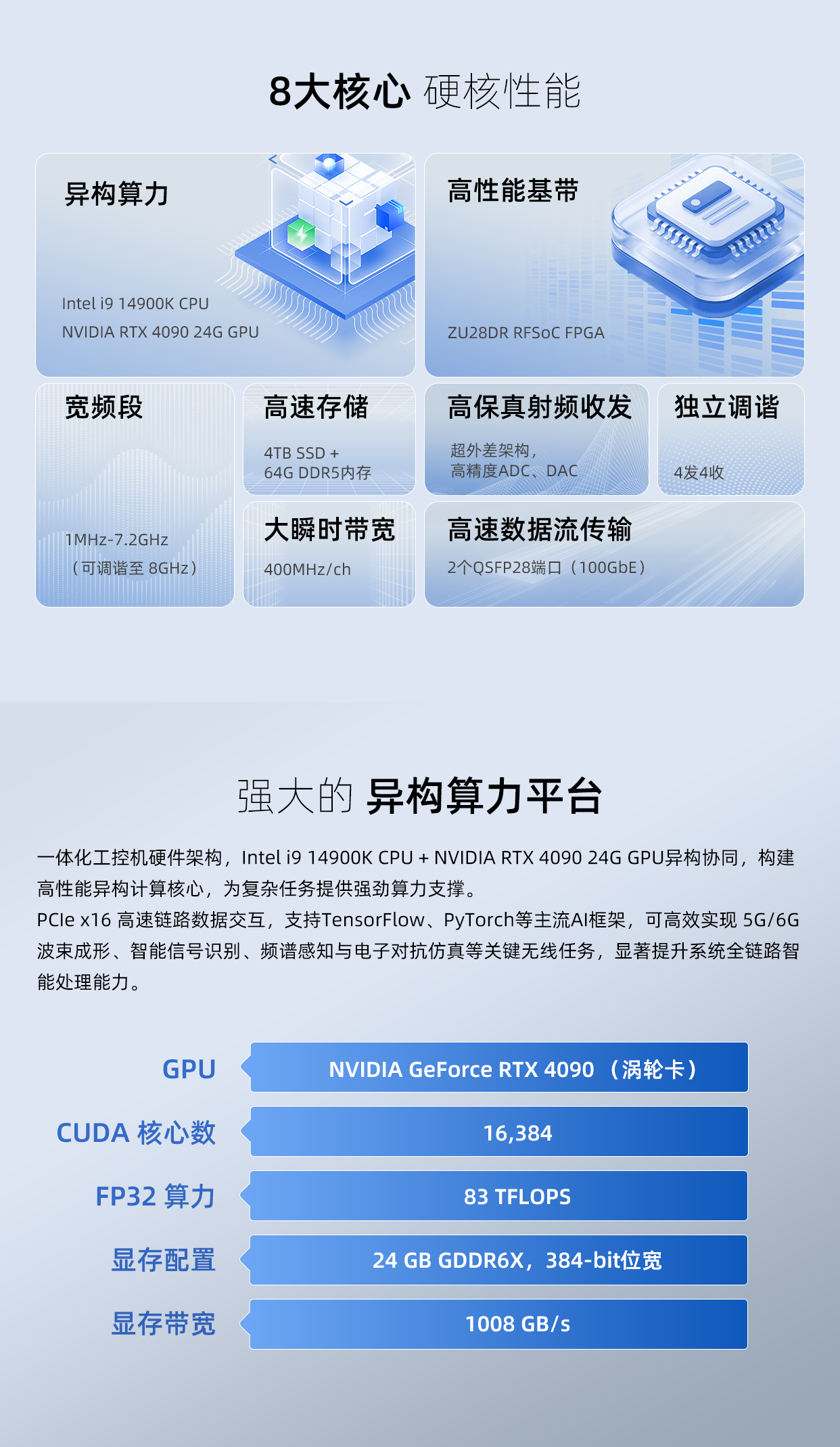● 集成Intel i9 CPU与NVIDIA RTX 4090 GPU,实现异构协同计算